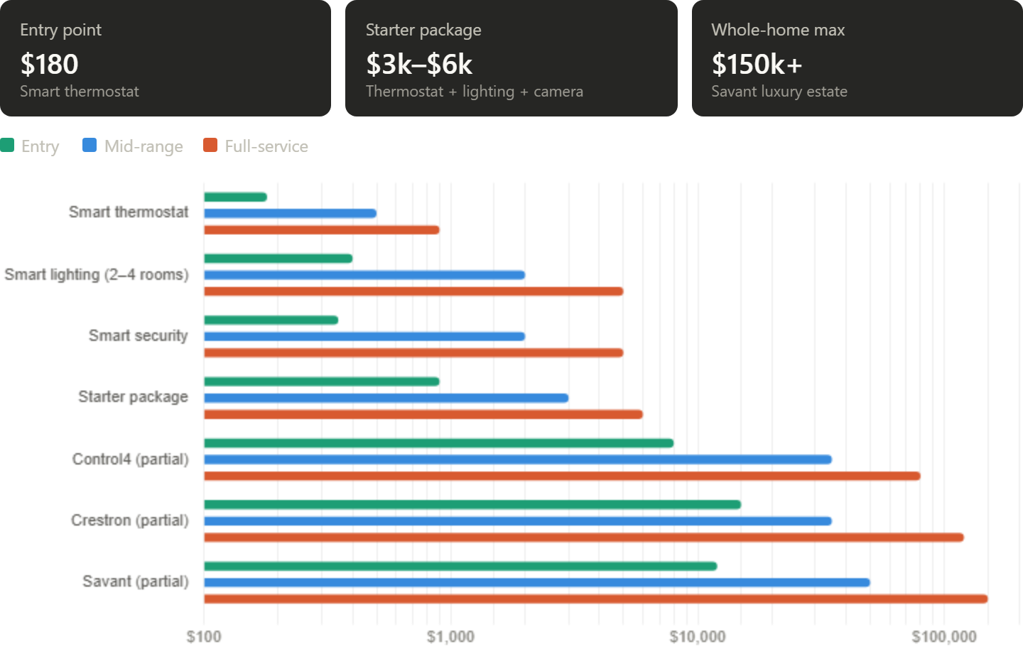 The cost to automate a home with smart tech from entry level to whole-home Crestron or Savant depends almost entirely on three decisions: which automation platform you choose, how many rooms are included, and whether your home was pre-wired during construction.